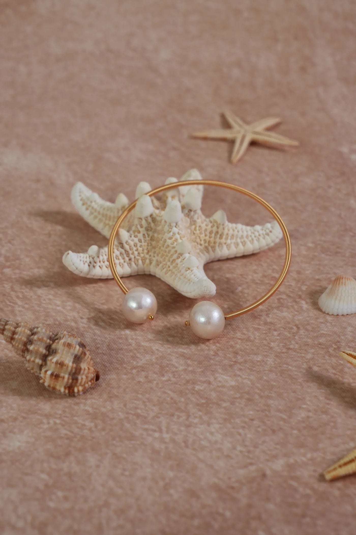 Orella Double-Pearl Bracelet – open-ended gold bangle featuring two natural pearls